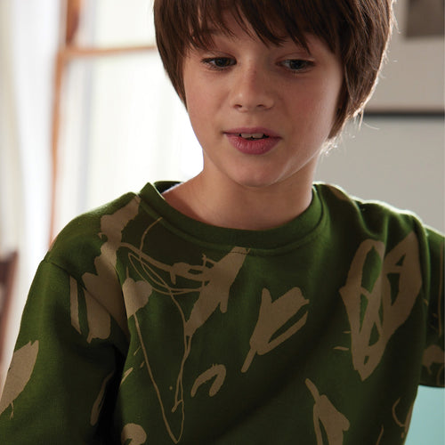 The Nature’s Canvas Kid Sweatshirt in jungle green is made from upcycled cotton and recycled plastic fabric that is soft on the skin and sustainable. This unisex winter must-have is effortlessly comfortable. Pair it with our matching canvas joggers, denim jeans, hoodies, jackets, and long-sleeved t-shirts! The sweatshirt is designed with slightly dropped shoulders for a relaxed fit and a ribbed neck, sleeve endings, and bottom hem. For each purchase, 1% of the sale goes to the restoration of the natural environment. Made in Portugal with love.