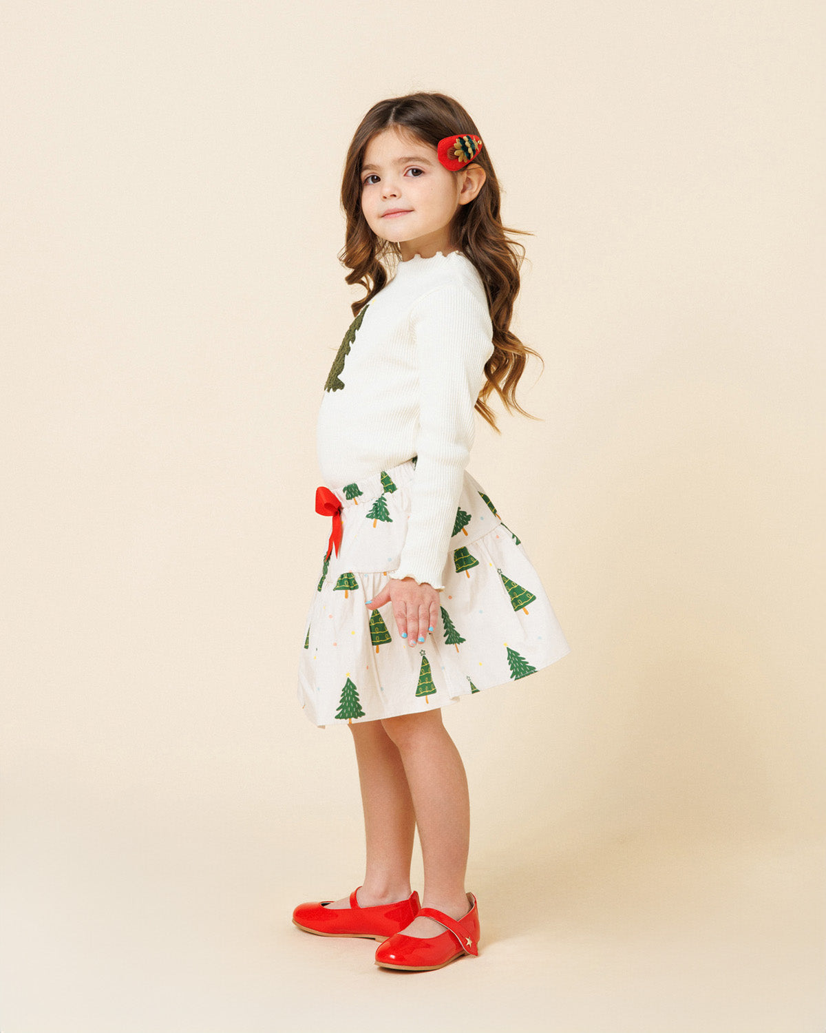 Bring festive charm to your wardrobe with our Patched Ribbed Top. Crafted from soft ribbed knit with delicate frilled-edge trims, it features an embroidered Christmas tree patch for a cozy, holiday-ready look. Perfect for layering or wearing on its own all season long.